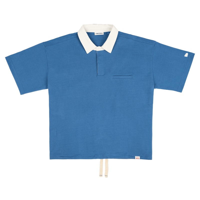 The New Era BrandedAlden Indigo Rugby Shirt features:Three-button closureNew Era wrap-around label at hemNew Era Flag logo patch at sleeveZip Welt Pocket at left chestAdjustable drawstring hemWoven collarKnit yarn dyed body400 GSM jerseyRelaxed fitColor: I