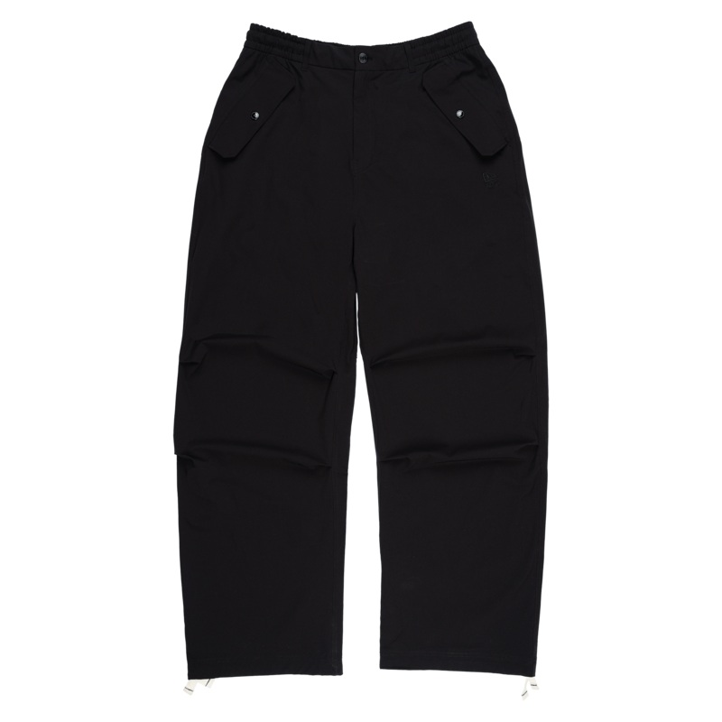 The New Era BrandedNylon Military Black Cargo Pants features:Elasticated waistband with Herringbone tape drawstring at inner waistbandZip fly front with shank button pant closureFlap pocket with a snap button closure at the front and rearNew Era Flag tonal