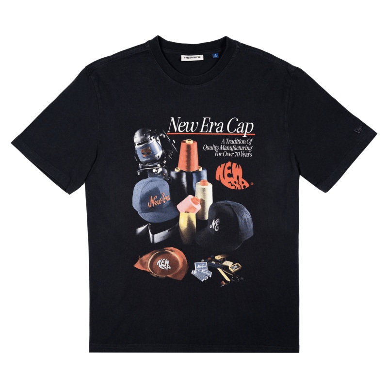 - Screen-printed New Era graphic at the chest