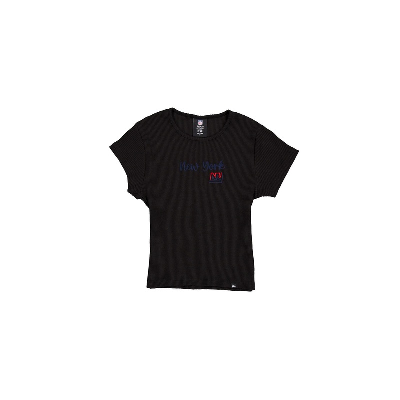The New York Giants Sport Classics Women’s Baby Tee features a chain-stitched Giants wordmark and an embroidered Historic team logo at the front.