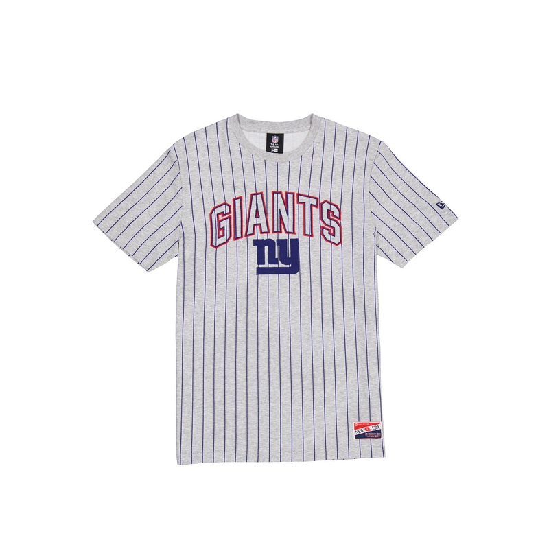The New York Giants Throwback Gray Pinstripe T-Shirt features an embroidered Giants wordmark above an embroidered team logo at the front.Fabric: 63% Cotton, 37% Polyester
