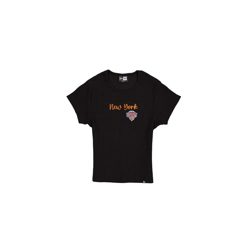 The New York Knicks Sport Classics Women’s Baby Tee features a chain-stitched Knicks wordmark and an embroidered team logo at the front.