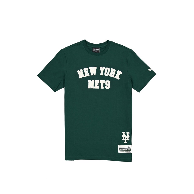 The New York Mets Dark Green Logo Select T-Shirt features a zig zag stitched twill applique Mets wordmark at the chest with an embroidered team logo above a woven tag at the left hip.