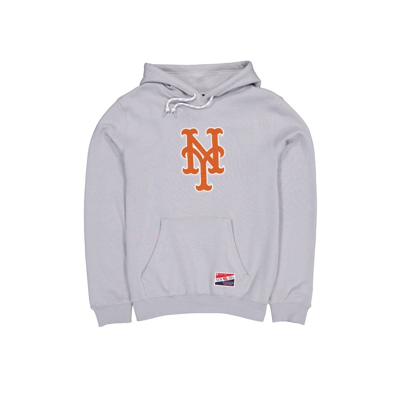 The New York Mets Throwback Gray Hoodie features a corduroy applique Mets logo and kangaroo pocket at the front.