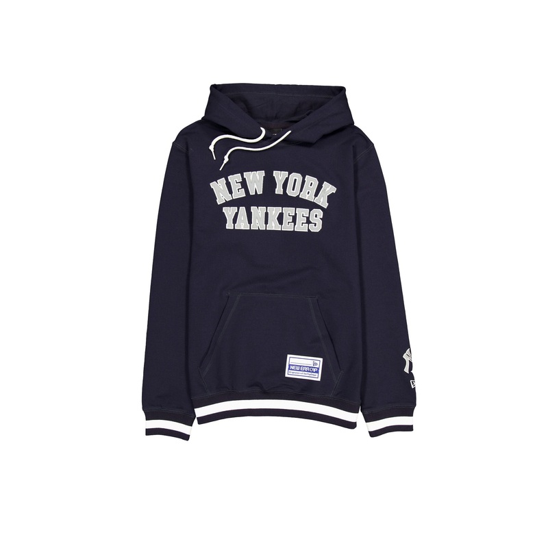 The New York Yankees Team Color Logo Select Hoodie features a zig zag stitched twill applique Yankees wordmark at the chest with a jock tag at the kangaroo pocket and an embroidered team logo at the left sleeve.Fabric: 52% Polyester, 42% Cotton, 6% Spandex