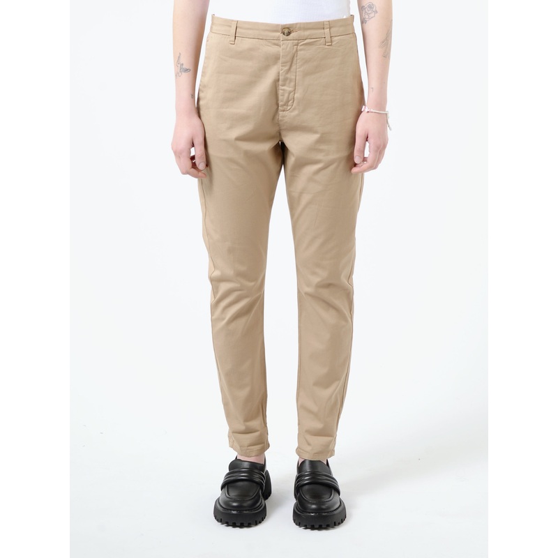 Hope News Edit Trouser is a chino inspired trouser crafted in soft cotton blend to create a soft and comfortable look and feel.Regular waistConcealed hook and eye closure with zip flySemi-dropped crotchSlant pocketsWelt pocket at the backTapered legCuffed