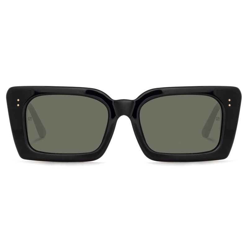 The Linda Farrow // Nieve sunglasses epitomize effortless chic. Crafted from acetate, these highly polished rectangular frames boast a slight angle, lending them an intriguing edge. With ZEISS technology lenses providing 100% UV protection and unrivaled cl