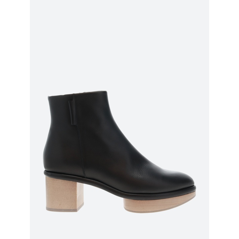 A clog like no other. Set on a solid wood heel and platform, the midsole is rounded and completely unique, with a simple, clean bootie silhouette.Ankle heightInside zip closureSide tabAlmond toeMeasurements:57mm heel20mm platformMaterialsUpper leatherOutso