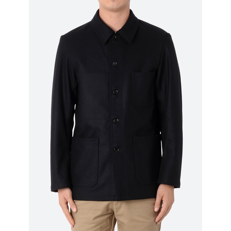 Vetra No. 4 Workwear Jacket uses cut and sew methods from the 1920s on double Melton wool to create a regular fitting unstructured jacket.