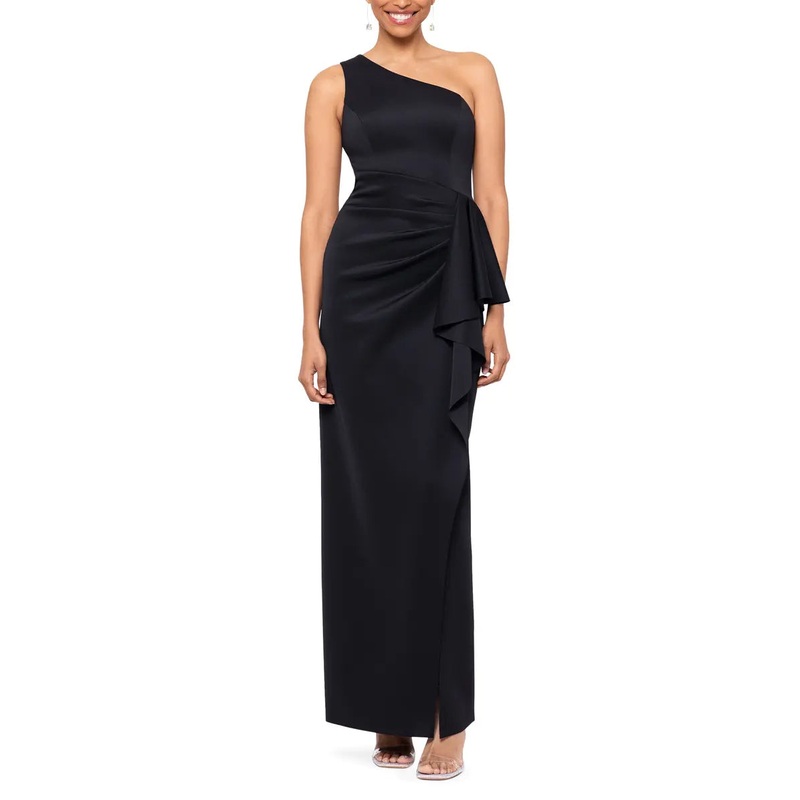 Noble and elegant one shoulder off the shoulder ruffled edge open back front slit evening dress
