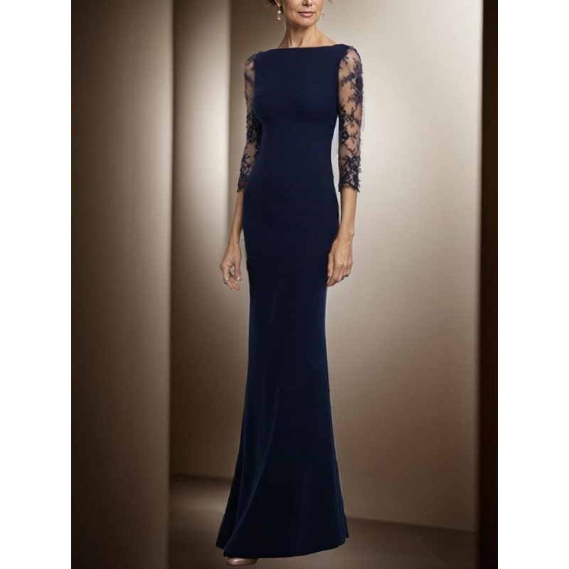 Noble Zipper Lace Applique 3/4 Sleeve and Floor Length Mother of the Bride Dresses