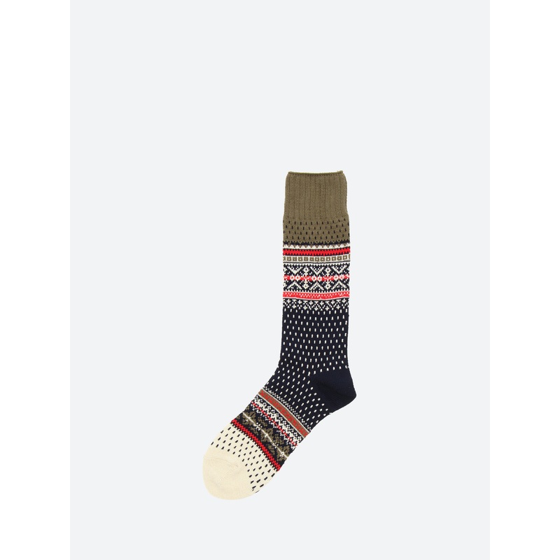 Beams Plus Nordic Socks with a Fair Isle pattern. Crafted from a cotton blend and complete with printed branding underfoot.