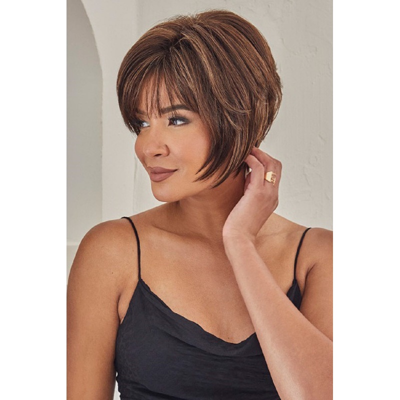 Experience natural beauty with Zeal! This short, layered bob defines modern fashion with its sleek straight style and feathery fringe. Crafted with high quality and lightweight synthetic fibers, this wig gives a natural appearance. With adjustable tabs and