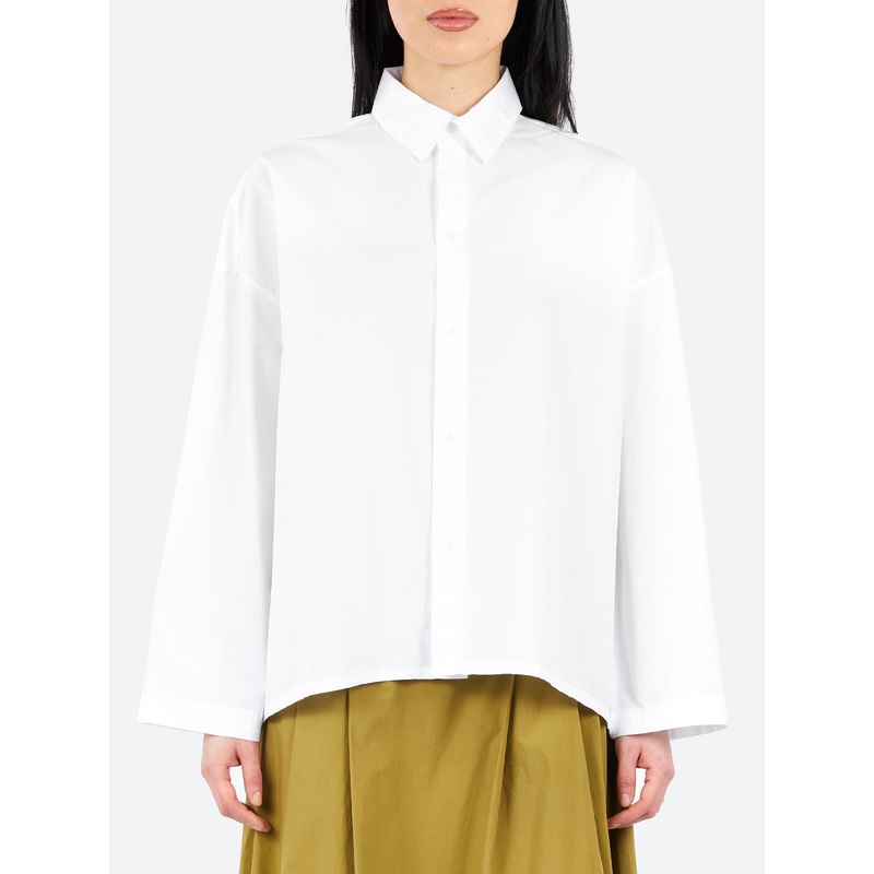 This Labo.art long-sleeve shirt is crafted from light, brushed cotton poplin for a soft and comfortable feel. It has a button-front closure, a collar, and dropped shoulders, creating a relaxed, oversized fit. The sleeves are wider with a hemmed edge, and the bottom hem is slightly curvedshorter in the front and longer in the back. The overall fit is loose and roomy, offering a casual, laid-back look.