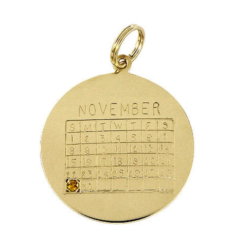 Circa 1960’s, this unusual vintage charm in 14K gold is perfect for a November 29 birthday, and features a November calendar with the November birthstone set into the 29th day! The back of the charm reads: “To My Tower Of Strength & Inspiration From Your Devoted And Loving Husband”