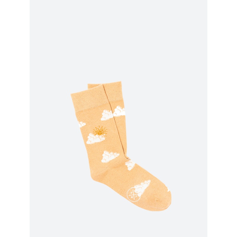 These pretty socks in a glittery color are decorated with clouds whose treatment has an “engraving” effect. Having them on your feet is like putting on a blazing sky to start your day off right.