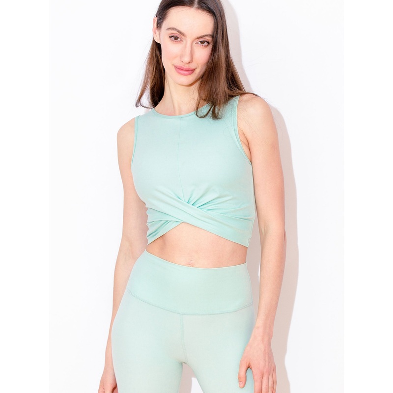 BAREWEAR+ Engineered by AUMNIE+ Nude Feel super soft lightweight fabric+ Enhanced stretch for contoured sleek fit with comfortDescriptionBasic crew neck crop tank with front wrap detailFlattering fit for all body typesHem lands on the waistline to enhance
