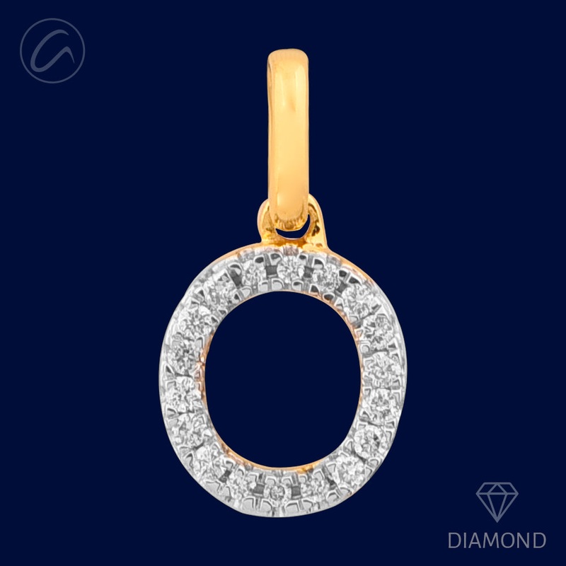 This pendant, exquisitely crafted in 18k yellow gold, weighs 0.6 grams and features the letter 'O'. It is adorned with diamonds totaling 0.07ct, shining with a G-H color and VS quality, which add a luxurious sparkle. The pendant measures 0.5 inches in leng