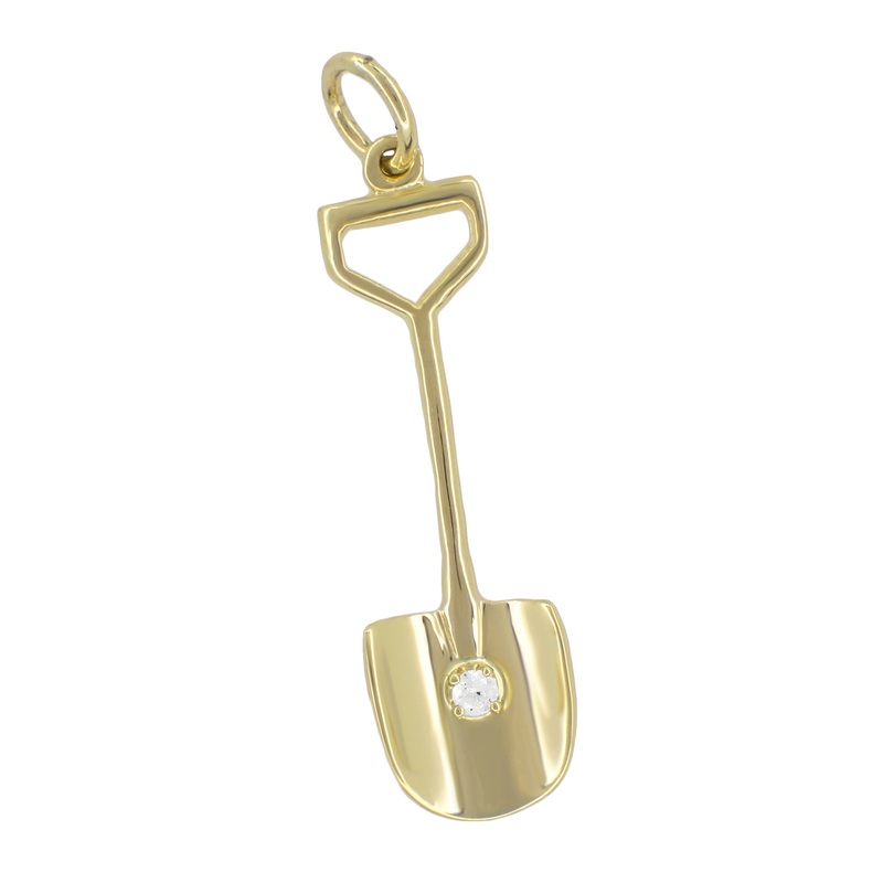 Old Shovel Charm with Diamond in 14 Karat Yellow Gold