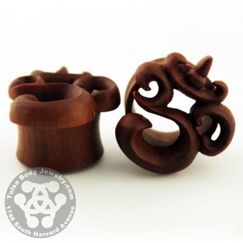 These double flare om tunnels are handcarved from sabo wood by Urban Star Organics. They have approximately 3/8" wearable area between the flares. Choose your size below.Last chance to own these! We can't restock this design because Urban Star is no longer