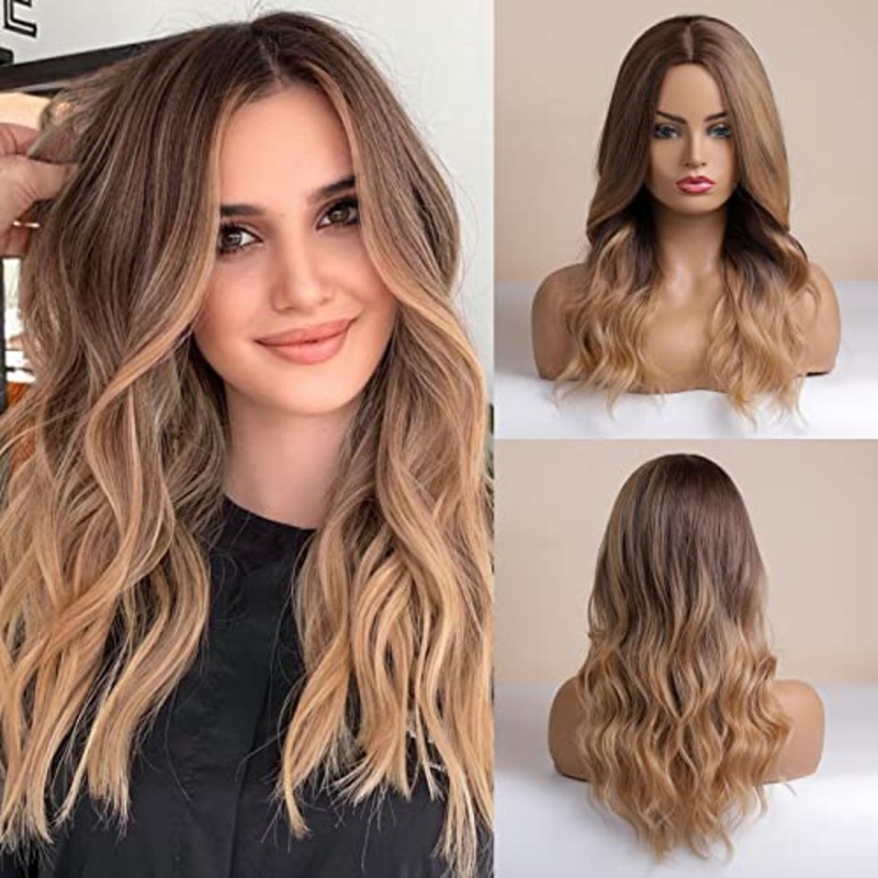 You will look amazing in this long Ombre Blonde Wavy Synthetic Wig