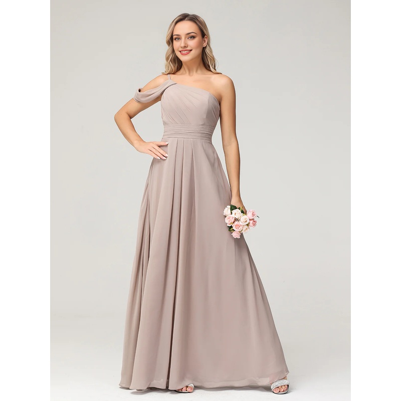 One shoulder chiffon long bridesmaid dress