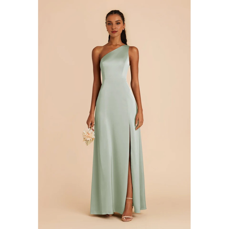 One shoulder collar fully lined trumpet shaped mermaid slit bridesmaid dress