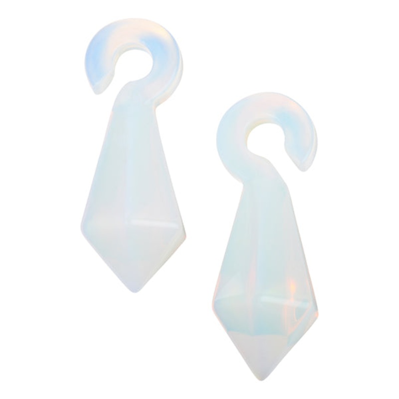 Thesefaceted ear weights are made from opalite glass. They will fit lobes 0g or larger.Dimensions: mm Wx mm Hx mmDWeight:approximately grams each piece