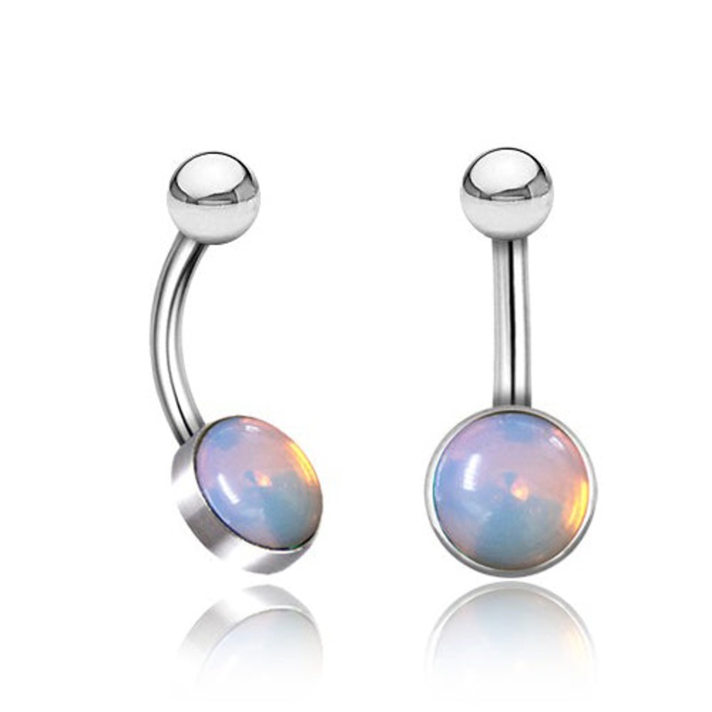 The 14 gauge belly ring is made from opalite and 316L stainless steel with external threading. Only the 5mm ball end is removable.