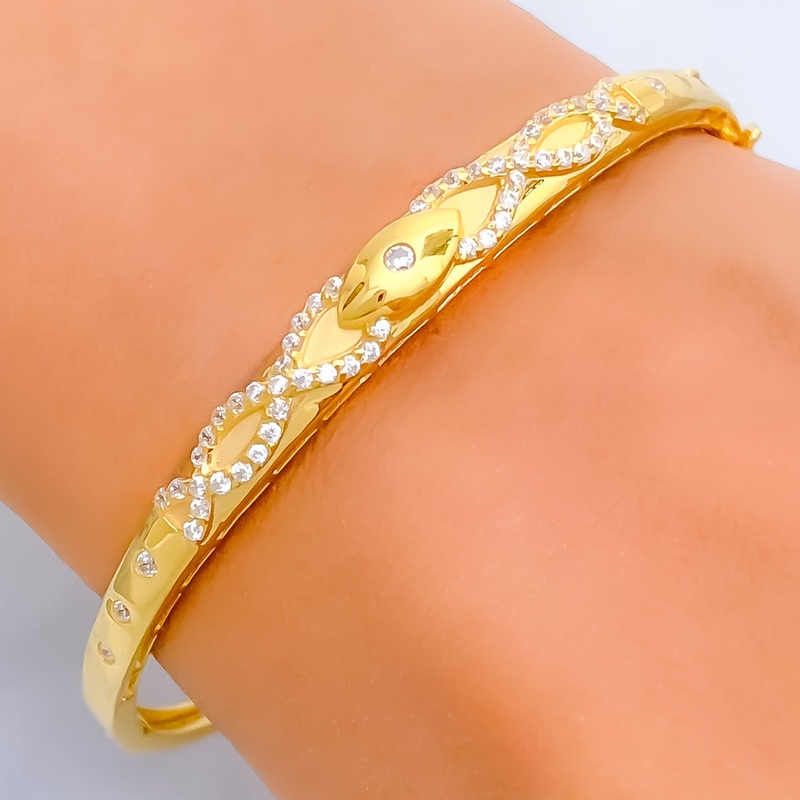 Opulent Modern 22k Gold CZ Bangle Bracelet