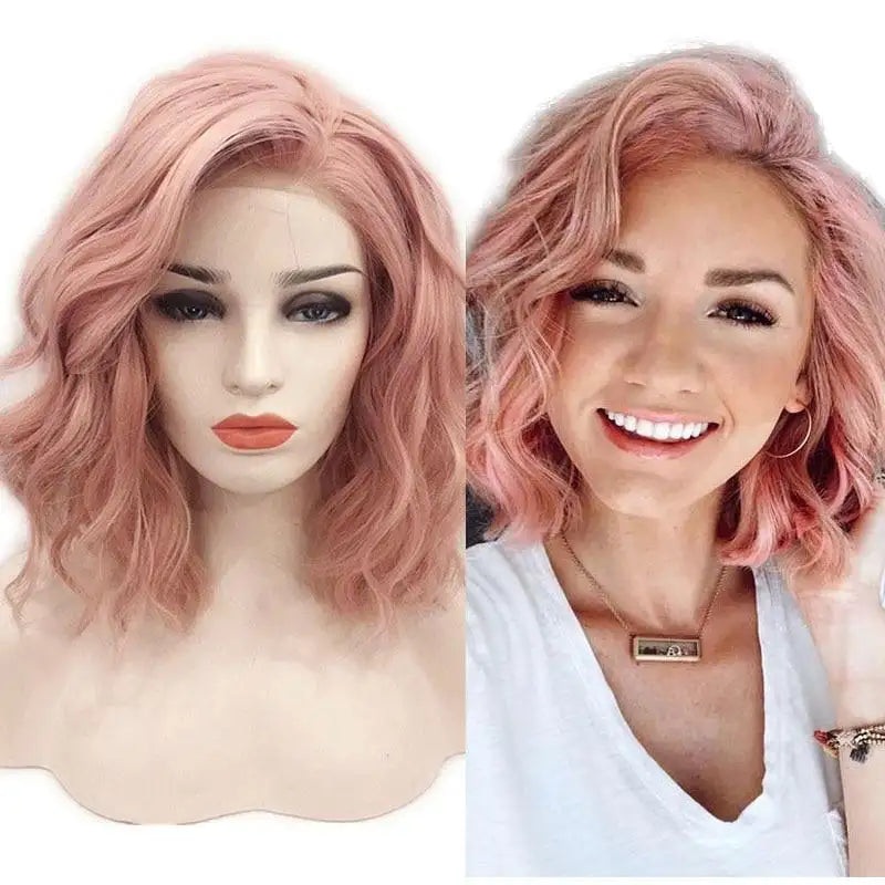 Orange Pink Natural Wave Bob Lace Front WigWig Style: Synthetic Lace Front WigHair Material: Synthetic Hair WigHair Style: Side PartHairline: Natural HairlineBaby Hair: YesCap Size: Average SizeBase Material: Swiss LaceCan Be Permed: YesTexture: Natural Wa