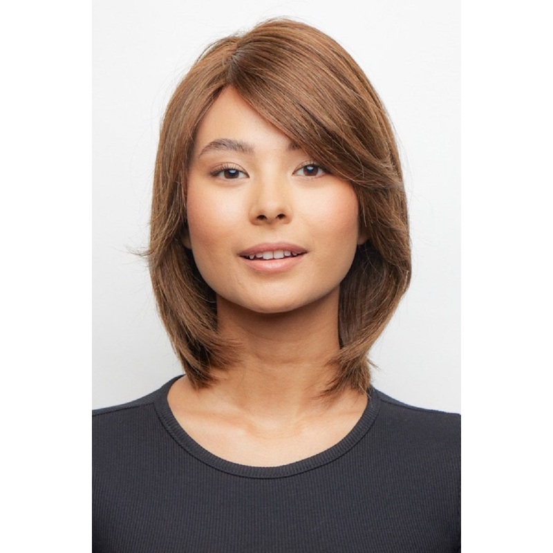 Payton from The Orchid Collection is a medium length human hair wig. This straight ready-to-wear wig is a versatile style that can be worn in many ways and textures. Payton has shattered layers and bangs that can be worn on either side. Our Payton cap construction is Monofilament and lace front plus a soft net. The lace front is a hairline fusion technology with minimal lace front for a natural look. Paytons wefts are sewn onto a soft, light breathable material that contours to the shape of the head.