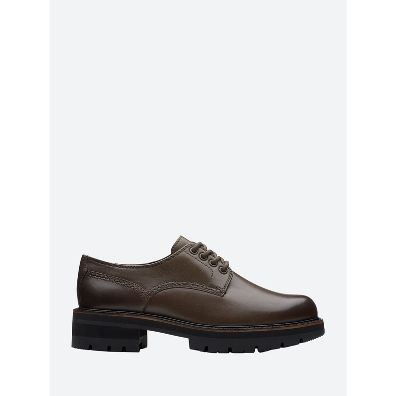 Clarks Orianna Derby with a super-chunky sole. Perfectly balancing style and practicality, this of-the-moment profile is prepped for all-day wear.Derby silhouetteLace-up closureMinimal side stitchingRound toeMaterialsUpper leatherLining: textileOutsole: ru