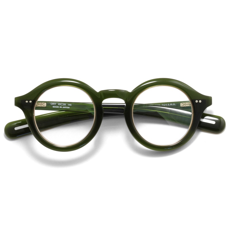 The Yuichi Toyama // ORY (U-166) frame features a bold round shape, expertly crafted from premium Japanese acetate. A subtle ring detail within the frame front adds a unique touch to its striking design, while titanium nose pads ensure a comfortable fit. H