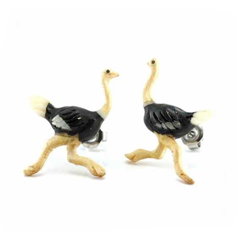 These ostrichstud earringsare handcarved from arang wood by Urban Star Organics. The postsand friction backs aremade from 316L stainless steel.
