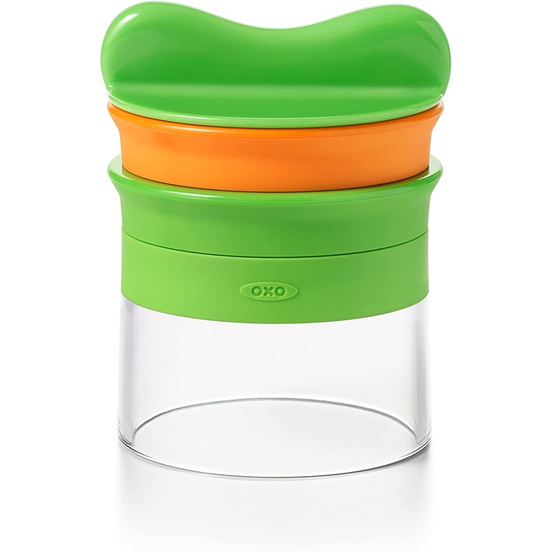 - Food holder protects hands during use and acts as a cap for safe storage
