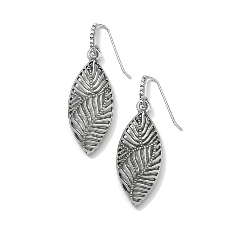 Leaf patterns ebb and flow elegantly on these bold silver and crystal-encrusted statement earrings that are sure to get complements flowing.