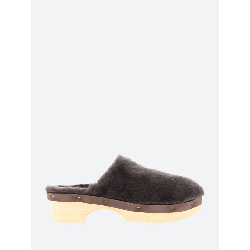These nostalgic wooden clogs are made with zero-waste Icelandic sheepskin, with an anatomically-shaped wooden sole that's comfortable for all day wear due to the soft rubber outsole.Fluffy sheepskin upper and liningSlip-on styleRound toeMeasurements:40mm h