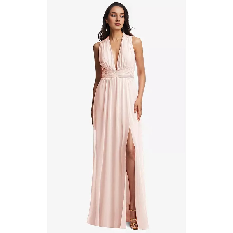 Parallel Crepe Deep V-neck backless Chiffon Long Prom Dress