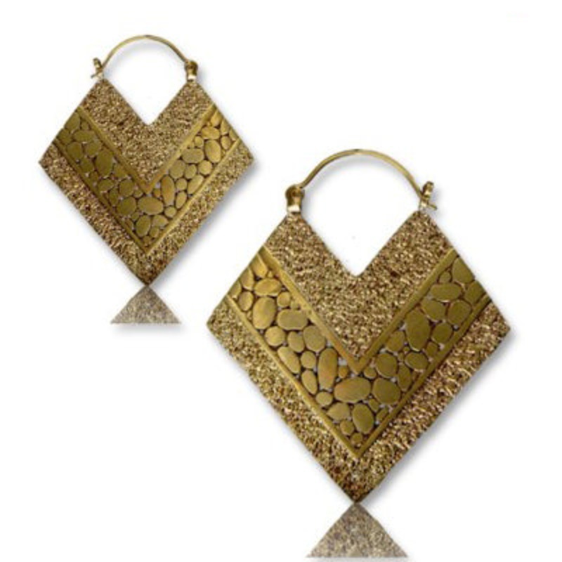 These 20 gaugepashmina earrings are cast from solidyellow brass and approximately 52mm wide x 60mm high.