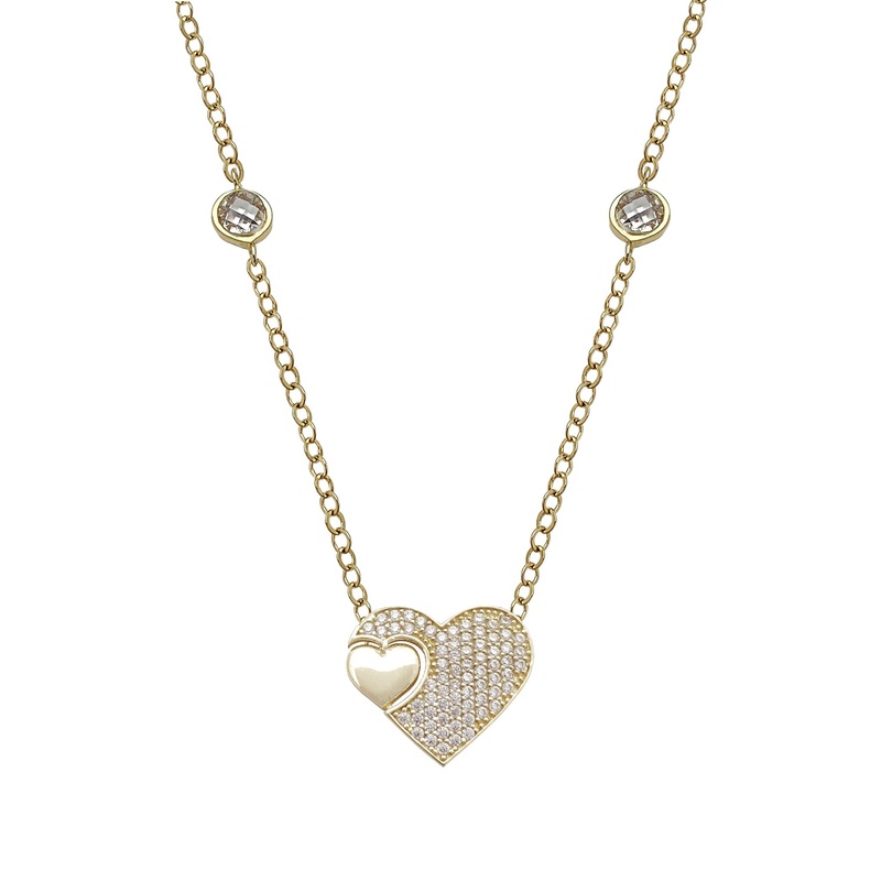 Pave Double Heart Necklace (14K)