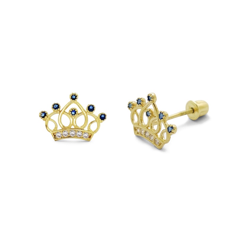 Pave Outline Queen Crown Stud Earrings (14K) Blue