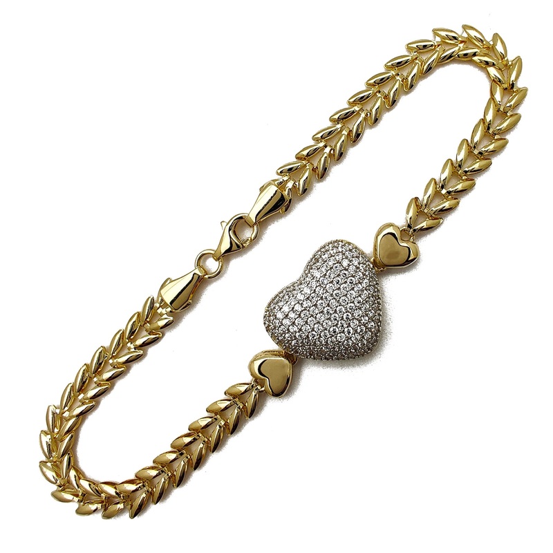 Precious Metal: 14 KaratTwo-ToneGoldType of Clasp/Lock: Lobster LockGemstone: Cubic ZirconiaStones may be upgraded upon request.HeartCharm Height: 14.8 mm*Link Width: 5.0 mm*Length: 7 inches*Approx. Weight: 5.6 grams**All weights and measurements are appro