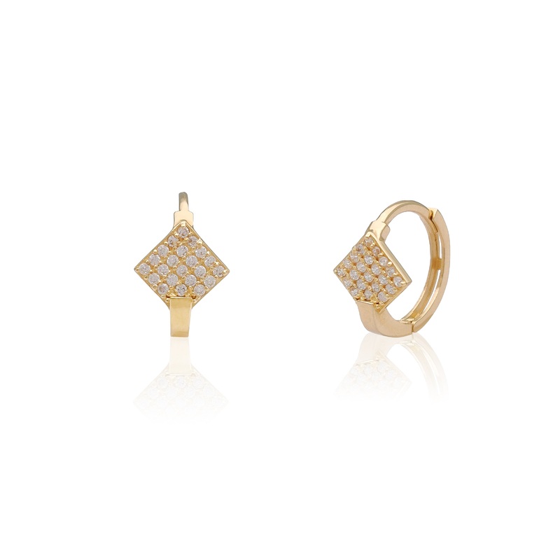 Pave Rhombus Huggie Earrings (14K) 14 Karat Yellow Gold