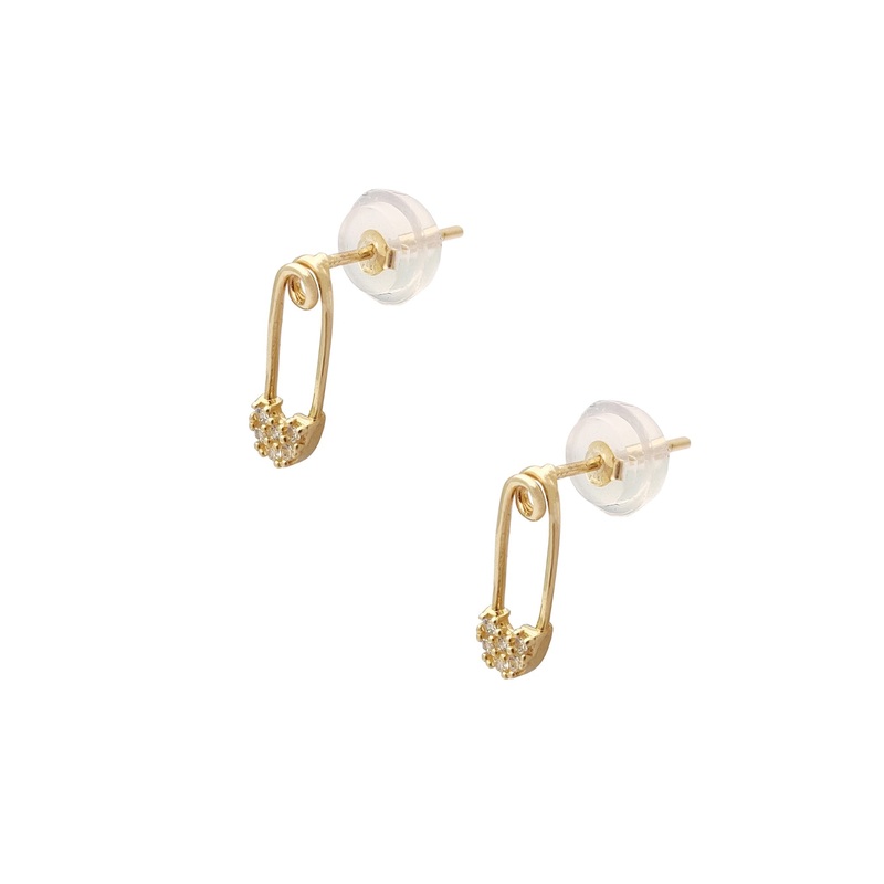 Pave Safety Pin Stud Earrings (14K) 14 Karat Yellow Gold