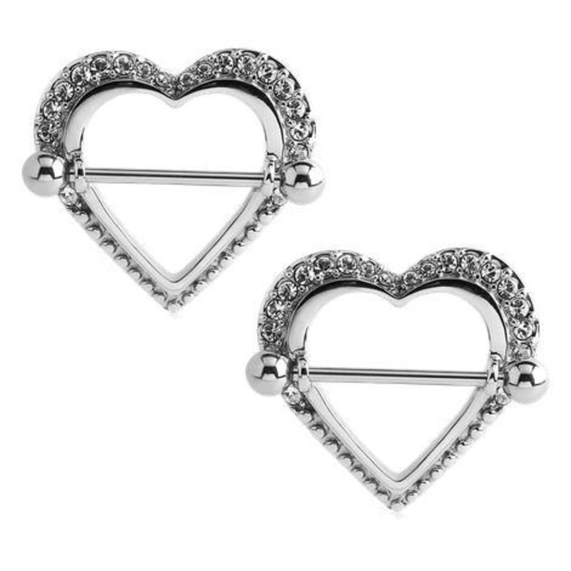 Paved Heart Stainless Nipple Shields 14g – 11/16″ diameter (18mm) Clear Stainless Steel