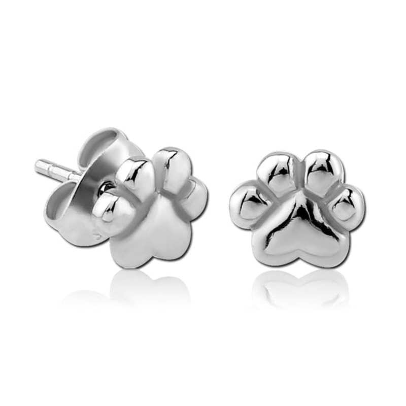 These 20 gauge paw print stud earrings are made from cast 316L stainless steel.