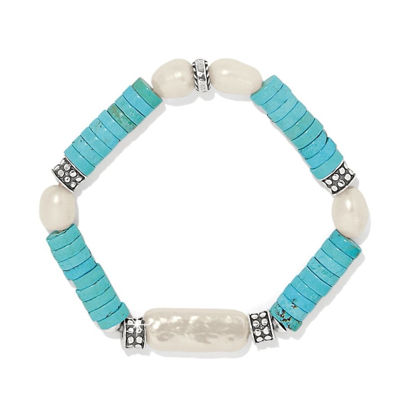 This comfortable stretch bracelet from our ever-evolving Pebble jewelry collection features luminous Biwa freshwater pearls unique stick-like pearls that originated in Biwa Lake, Japan. They are combined with cool mosaic textures inspired by 3000-year-old Balinese silver jewelry artisans pebble and dot techniques.