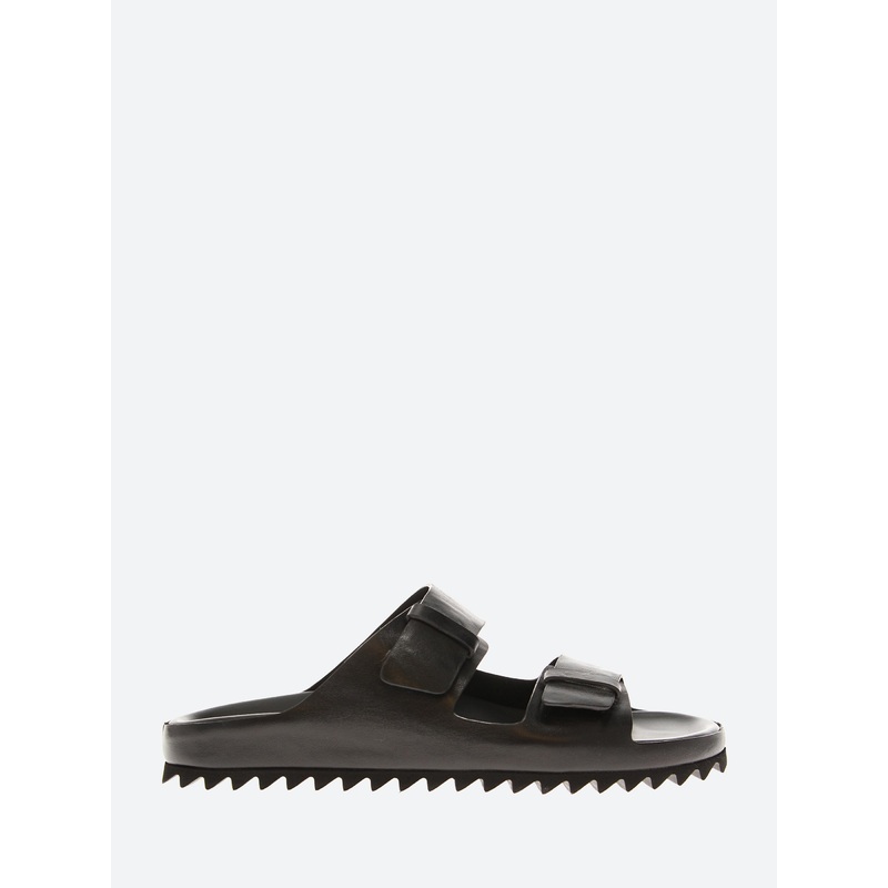 Officine Creative Pelagie slides perfectly combine comfort and effortless contemporary style. Perfect for leisure and relaxation.Two front straps with tonal buckle closureSeamless designSlip-on styleBlack tread rubber soleMaterialsUpper: leatherLining: lea