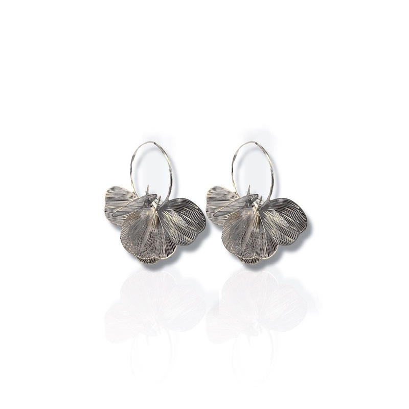 Pendientes de aros con detalle de flores encolor dorado.Estn hechos de acero quirrgico. Este material no pierde el color y no es alrgico.Composicin: 100% acero alergnico Este articulo esta diseado y fabricado integramente en Europa e importado por Sorellas